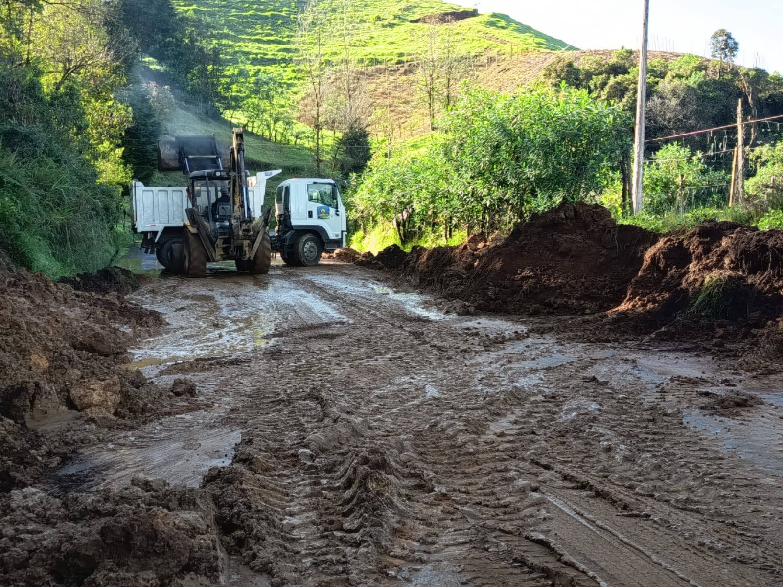 Limpieza del derrumbe en la vía San Pablo – Chillanes